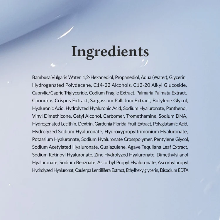 70%-ban Bambusa Vulgaris (bambusz) vízzel készült a mélyhidratálásért, 10 000 ppm pantenollal dúsítva a hosszan tartó hidratálás fokozása érdekében.