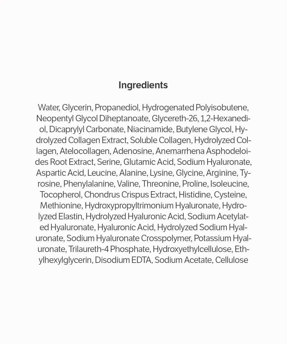 ✨ Kollagén (ultra-mikro molekulák) – hatékonyan behatol a bőrbe, serkenti a rugalmasságot és csökkenti a ráncok mélységét.