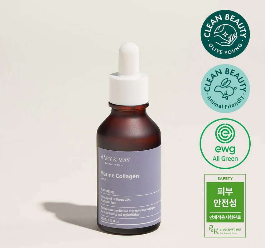 A 95%-ban hidrolizált tengeri kollagénből készült Mary&May Marine Collagen Serum feszesíti a bőrt és értékes öregedésgátló tápanyagokkal tölti fel azt. Illatanyagmentes.