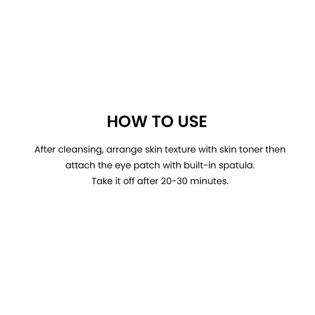 A bőr megtisztítása után tedd fel a tapaszt a szemkörnyékre. Hagyd a tapaszokat kb. 20-30 percig hatni (ügyelj arra, hogy ne száradjanak ki). Távolítsd el a tapaszokat, és óvatosan ütögesd be a maradék esszenciát. A kezelés végén vigyél fel szemkörnyékápoló krémet.