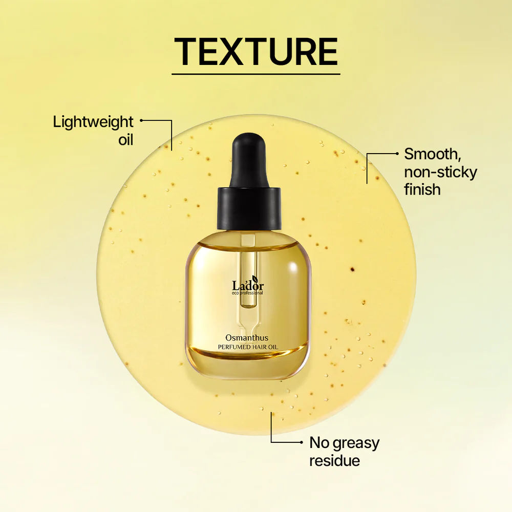A LADOR Perfumed Hair Oil Osmanthus hajolaj a luxus ápolást az aranyló osmanthusvirágok finom illatával ötvözi – egy virágos illat, lágy, gyümölcsös jegyekkel, amelyek a sárgabarackra és a napsütésre emlékeztetnek. Ez a könnyű olaj gyorsan felszívódik, hidratál, simítja a haj felszínét és megszelídíti a szálló, göndörödő hajat, mindezt anélkül, hogy zsíros érzetet hagyna maga után vagy elnehezítené a hajat.