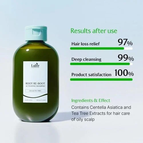 A Lador Root Reboot Activating sampon cica és teafa kivonattal mélyen tisztítja és nyugtatja a fejbőrt. Az ázsiai gázló (Cica) és a teafaolaj kivonat segít csökkenteni az irritációt és a felesleges faggyút, elősegítve a fejbőr kiegyensúlyozott állapotát. Ez a sampon a vérkeringés javításával és a hajhagymák erősítésével serkenti a hajnövekedést. Ideális érzékeny fejbőrre, friss, táplált és revitalizált érzetet hagy. Mindennapi használatra alkalmas.