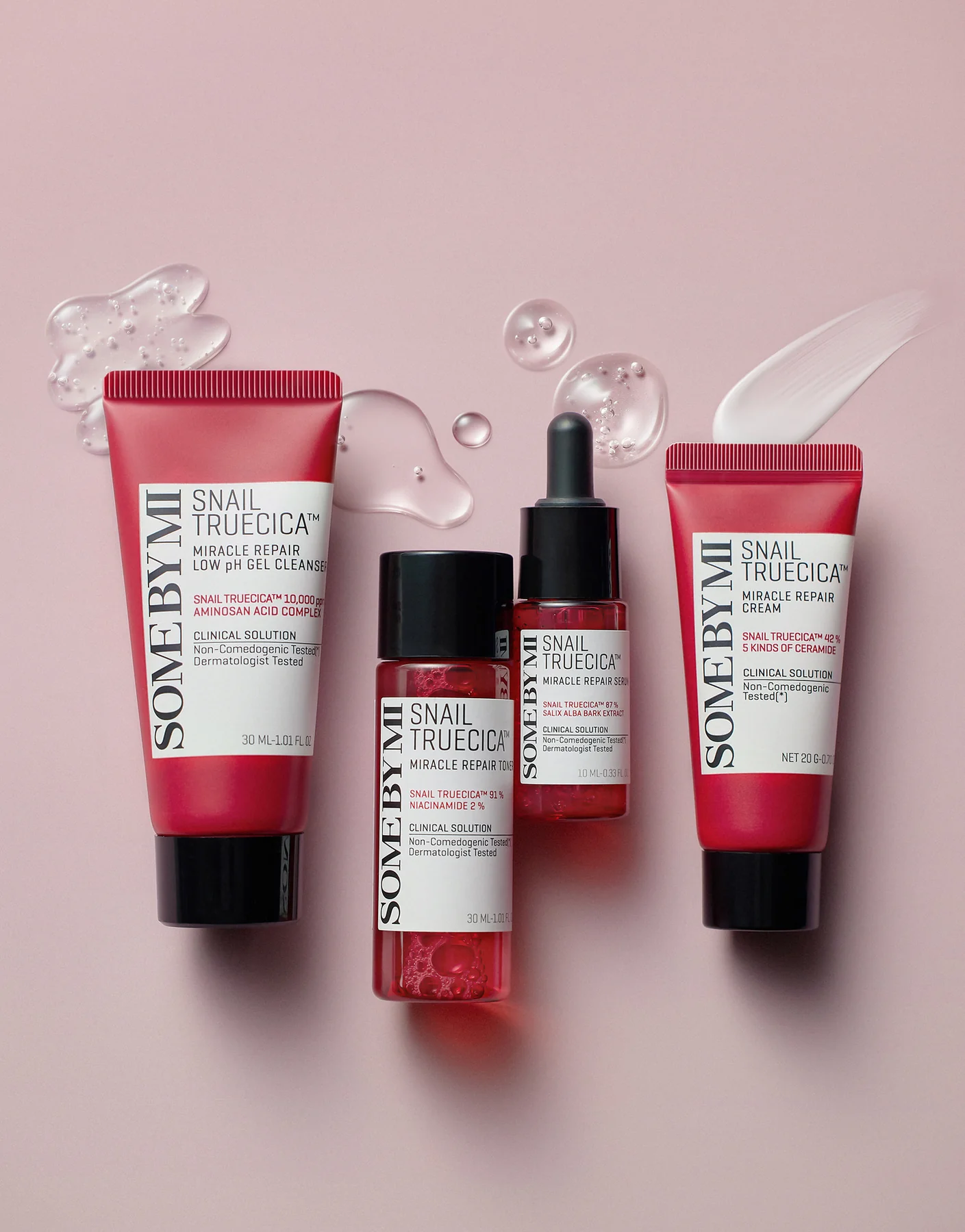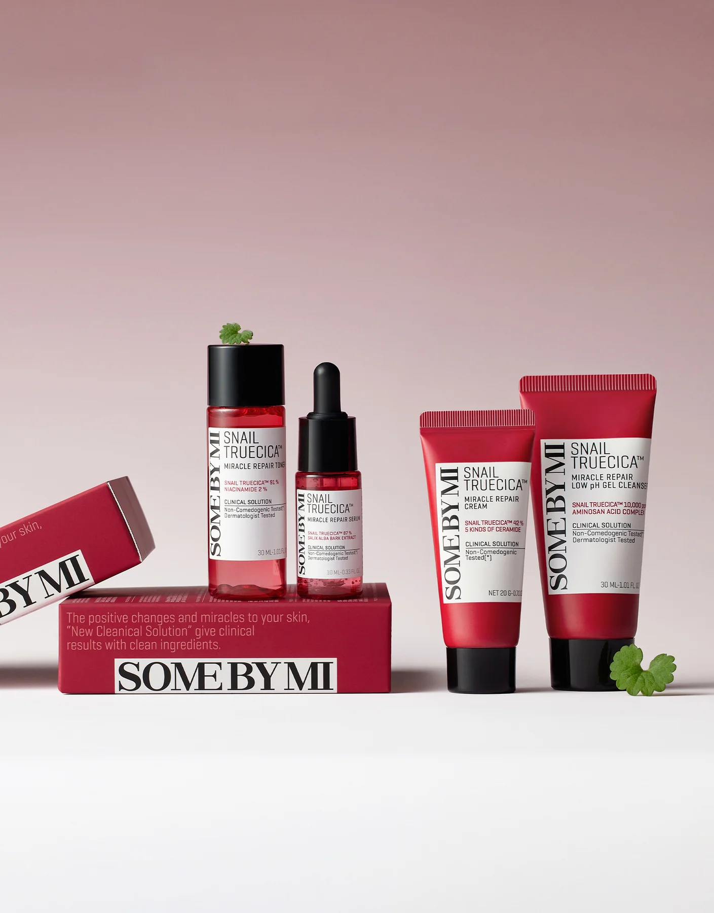 A szett a SomeByMi kollekció 4 bestseller termékét tartalmazza, melyek csiganyálka és ázsiai gázló kivonattal kiválóan ápolják és megújítják az igénybevett, sérült bőrt.